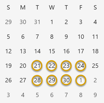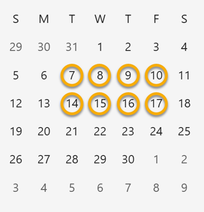 Each course consists of 8 morning classes, Tuesday through Friday for two weeks.