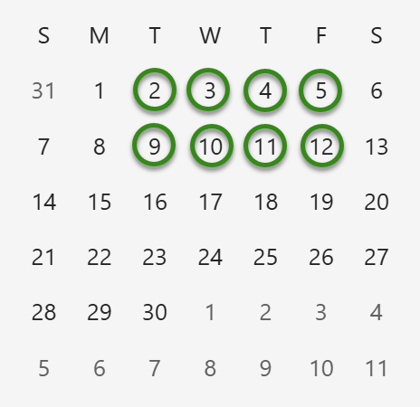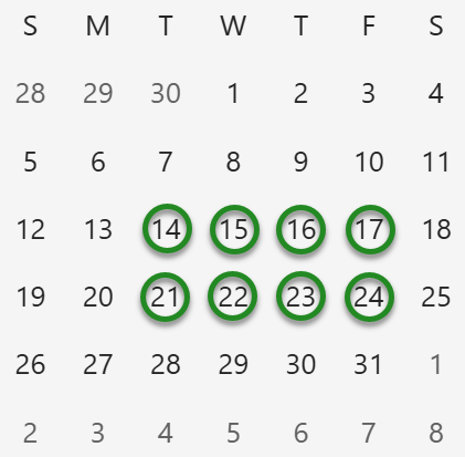 Each course consists of 8 morning classes, Tuesday through Friday for two weeks.